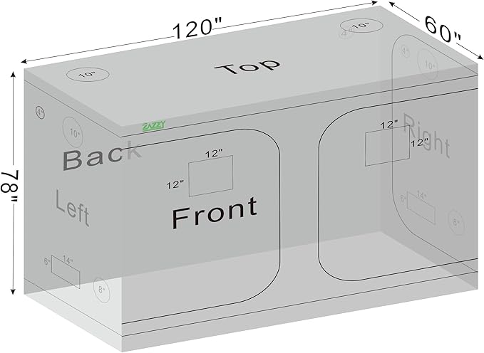 zazzy Grow Tent, 120"x60"x78" Hydroponic Mylar Grow Tent Reflective Garden Growing Dark Room with Observation Window, Removable Floor Tray and Tool Bag for Indoor Plant Growing 10x5