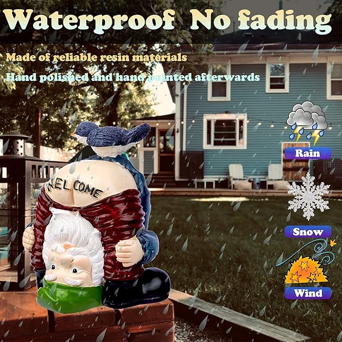 Garden Gnomes Outdoor Funny Welcome Gnomes Outdoor Statue Garden Gnome Figurine for Lawn Patio Yard Decoration Christmas Garden Gifts