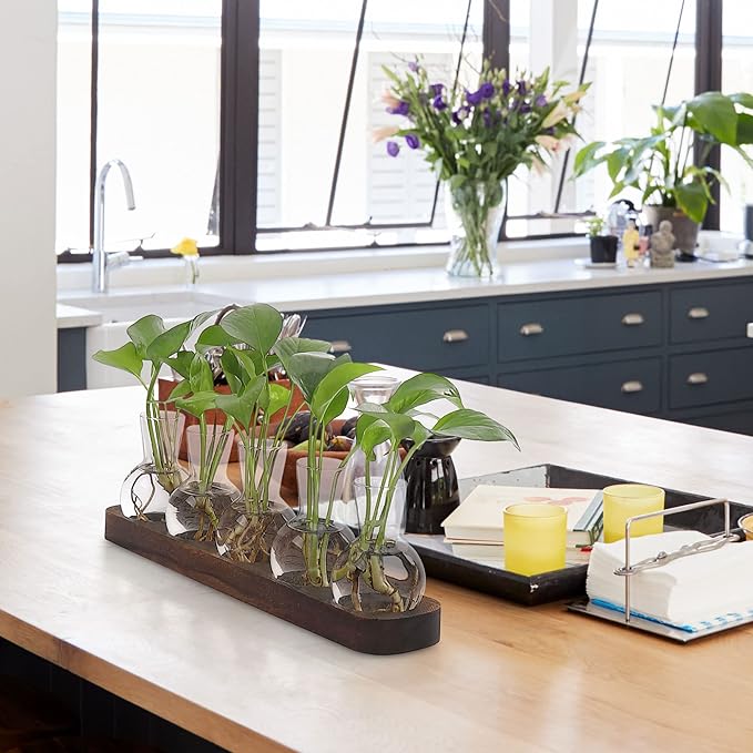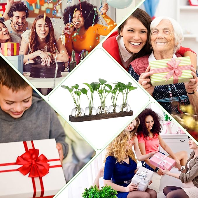 YIBOT Plant Propagation Stations,Glass Propagation Vases for Plants Terrarium with Wooden Tray Plant Lover Gifts for Propagating Hydroponic Plants Home Office Decor(5 Vase)