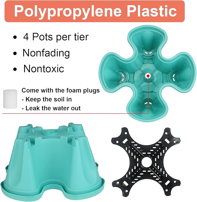 DUNCHATY Stackable Vertical Garden Planter with Wheels, 5 Tier Herb Planter Pots for Growing Vegetables and Succulents, Teal