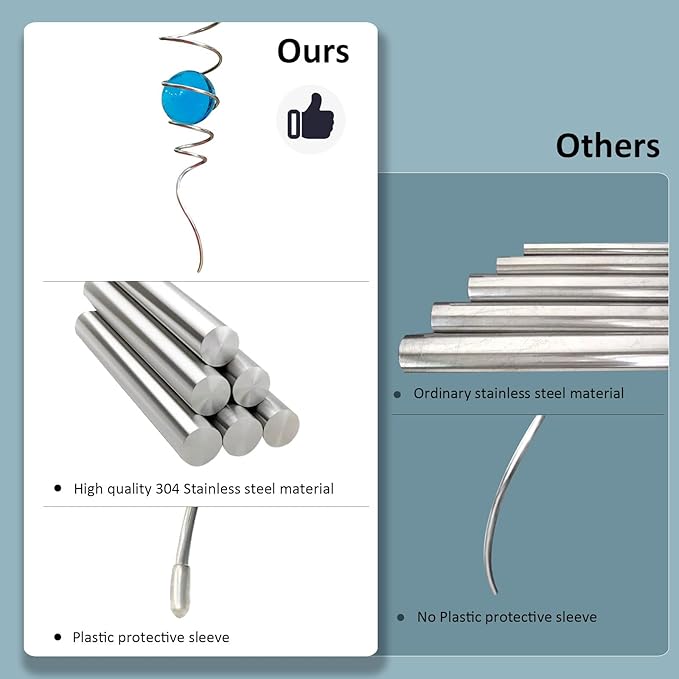 - 【High Quality Gazing Ball Spiral Tail 】11inch height spiral tail gazing ball made of #304 stainless steel wire,the 2inch colored ball made of pure solid color glass material,have good weather resistant,no fading under sunshine.Better quality than iron material with nickle plating and painting color glass ball in the market.