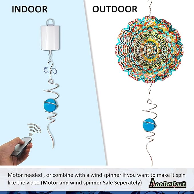- 【Widely Used Wind Spinner Tail 】13 inch in total length, 2.5 inch wide,0.5 pounds weight.Wind spinner ball can hang up indoor, outdoor,anywhere you desire or along with 3D wind spinners,or attach to a rotating motor(motor not included ) to twirl indoor.