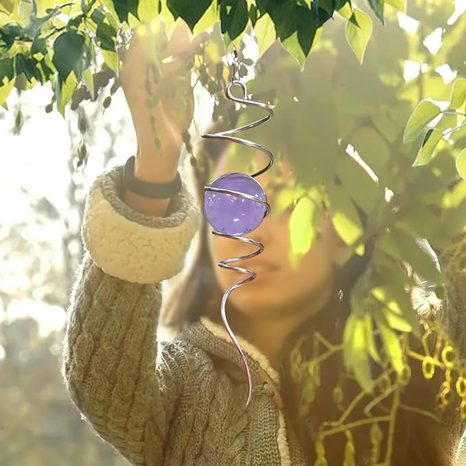 - 【Easy To Position】The Spiral can't spin by itself ,if you want to make it spin like the video ,need add 1pc motor (not include) ,or combine it with a wind spinner or any rotatable hanging ornament to help it rotate. Come with 1pc 2 inch colored glass orb(not paint), 1pc silver color spiral tail twister,and 1pc swivel hook accessory, ready to hang and enjoy.