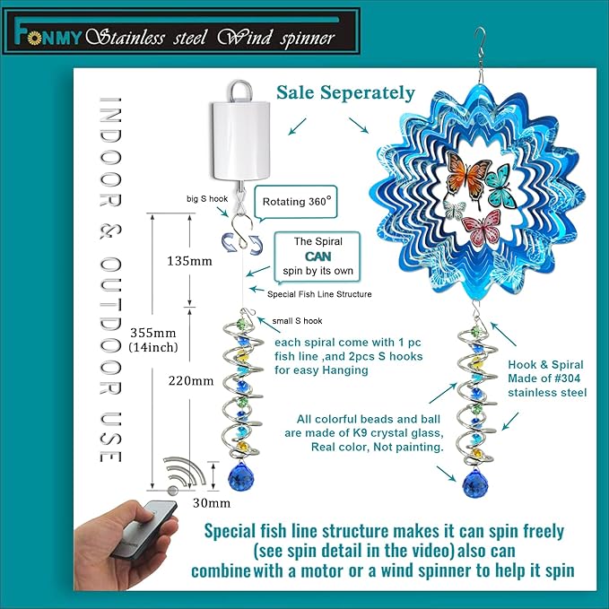 - 【PREMIUM CRYSTAL SUNCATCHER】The spiral with crystal is a special sun catcher rainbow maker, it’s Super Sparkly under sunshine. You can also add a motor(not include) to let the spiral to spin ,while spiral tail rotating (it can’t spin by itself.), the crystal ball seems to move up and down like floating and dancing in air, presents the magical visual illusion.