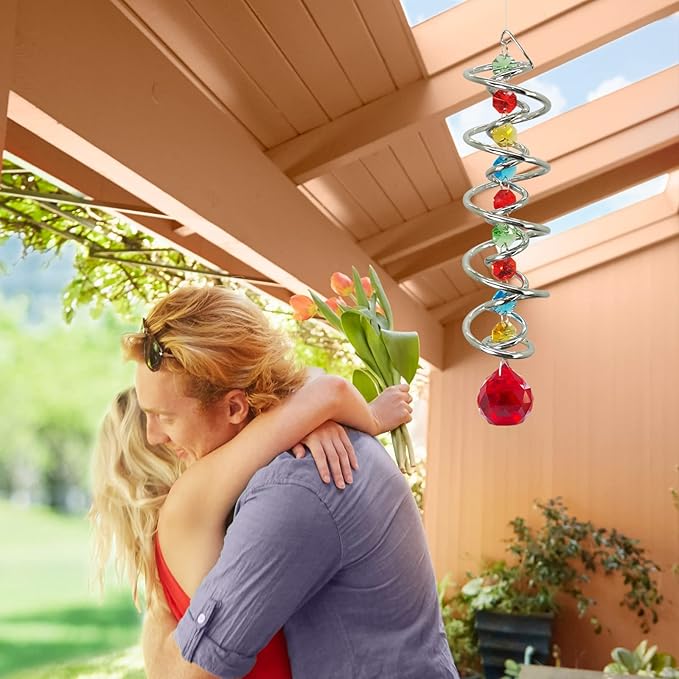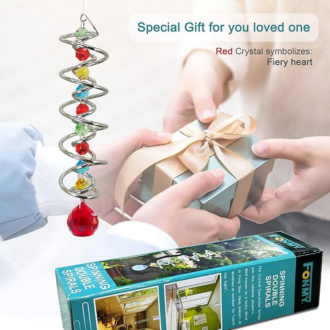 - 【PREMIUM CRYSTAL SUNCATCHER】The spiral with crystal is a special sun catcher rainbow maker, it’s Super Sparkly under sunshine. You can also add a motor(not include) to let the spiral to spin ,while spiral tail rotating (it can’t spin by itself.), the crystal ball seems to move up and down like floating and dancing in air, presents the magical visual illusion.