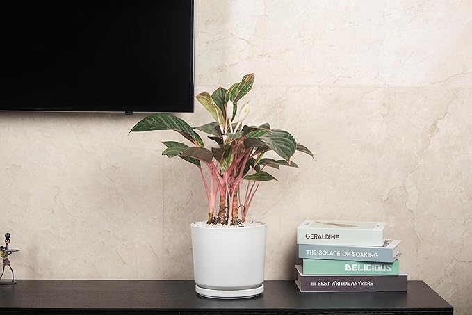 Ekirlin 9 inch Plant Pots,Ceramic Flower Planters Indoor,Modern Succulents Containers with Drain Hole Saucer,Decorate Home,Office & Outdoor (White)