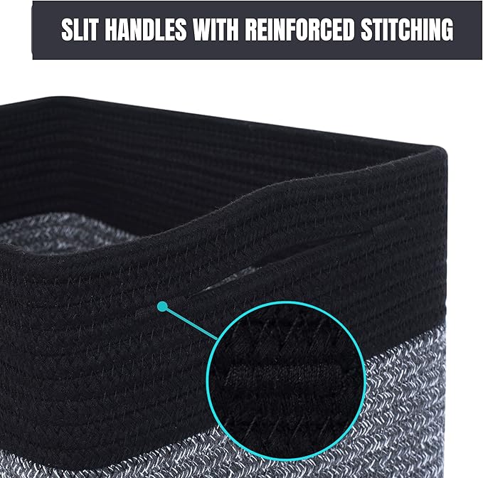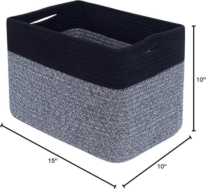 MINTWOOD Design Storage Basket for Shelves, Decorative Baskets for Organizing, Book Basket, Storage Cube Bin Box, Woven Closet Organizer, Pantry Closet and Shoe Basket, Black Grey Mix