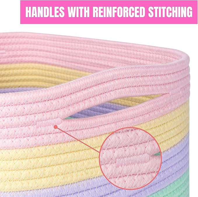 MINTWOOD Design Storage Basket for Shelves, Decorative Baskets for Organizing, Book Basket, Storage Cube Bin Box, Woven Closet Organizer, Pantry Closet and Shoe Basket, Pastel Rainbow