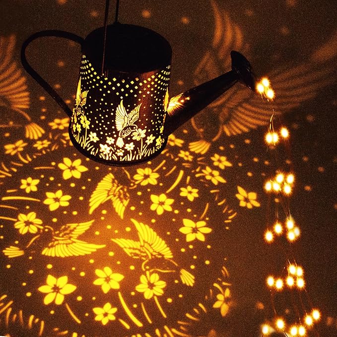 - 【Ideal decorations &gifts】Solar outdoor decor lights are also an ideal gift for housewarming and gardening.Solar watering can lights project beautiful patterns at night,giving you a dreamlike feeling in gardens,patio,lawns,and courtyards.This solar lights is a garden gift for women,parents,grandma,friends,and gardeners.Whether it's birthday,Mother's Day,Father's Day,Christmas,or Thanksgiving,they will all love this unique design.