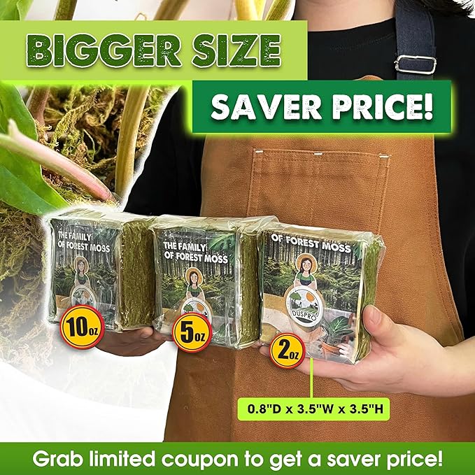 - ππ πππππππ ππππ-ππππππ ππππ: Made from 100% hand-picked and sun-dried forest moss. Our long-fibered moss is distinct from typical sphagnum or Spanish moss, which ensures a natural and efficient solution. EACH PACK CONTAINS 56 GRAMS (APPROXIMATELY 2 OZ) OF DRIED MOSS, WHICH CAN EXPAND UP TO 1.6 QUARTS IN VOLUME WHEN SOAKED IN WATER.