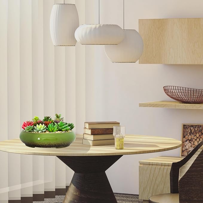 Succulent Pots - 11.5 Inch Ceramic Bonsai Pots with Drainage, Large Shallow Succulent Planters for Indoor Outdoor Plants, Round Glazed Cactus Flower Plant Container Bowl Home Desk Decor(Green)