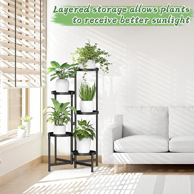 - 【STURDY INDOOR PLANT STAND】Our premium 5-layer plant stand indoor is constructed of heavy-duty iron and high-temperature electrostatic spray paint to ensure durability and corrosion resistance. The stable triangular structure maintains balance without bending or tipping.