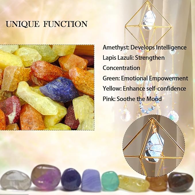 - ✨Suncatchers is handcrafted with real healing Crystal. Your room will be full of rainbows when the glass prisms catch the sunlight.