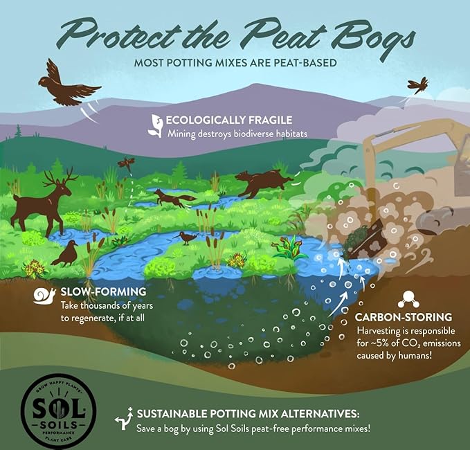 - PEAT MOSS FREE: Our tropical potting mix is not peat based because peat bogs are ecologically fragile and it's not a sustainable option for plants on any level which is why we use coco chips for plants and the planet to thrive in a functional way