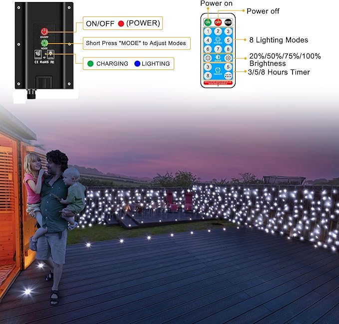 - 8 Modes & Timer Function: With 8 different modes to choose from, including fireflies flashing, waves, fading, chasing/flashing, and more, you can customize the lighting to suit any occasion. Plus, the built-in timer ensures that the LED curtain Christmas lights turn on at dusk and turn off automatically, saving energy and hassle.