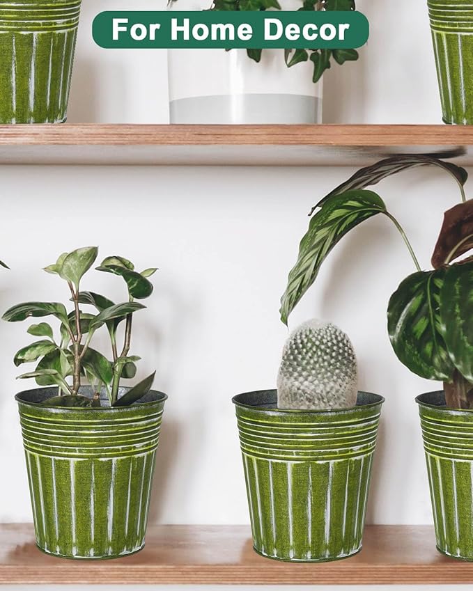 vensovo 6 Inch Kelly Green Metal Rustic Flower Pots - 6Pcs Medium Galvanized Planters with Drainage Hole and Rubber Plug, Rustproof Metal Bucket Plant Pots Farmhouse Vintage Style for Decor