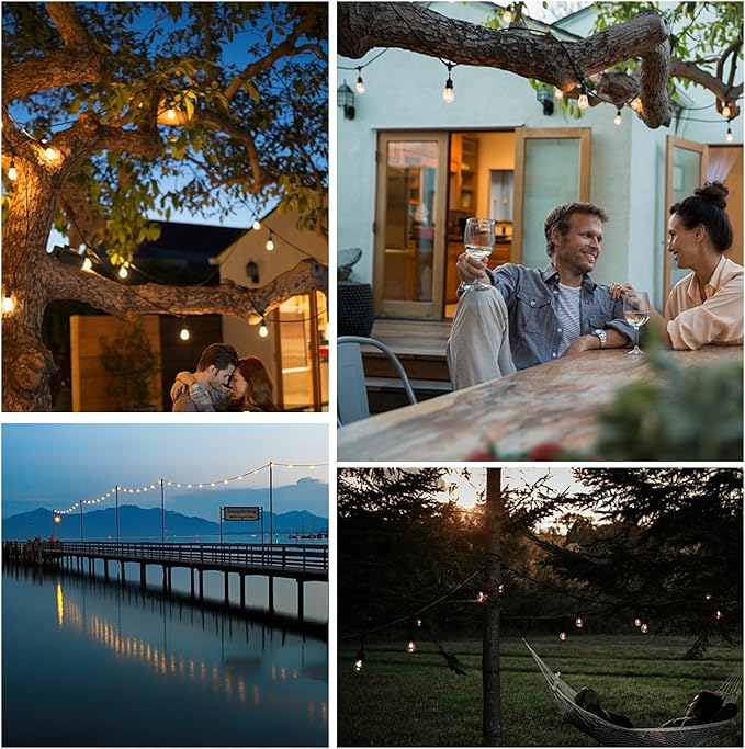 - 【Weatherproof&Shatterproof】Edison light string can create a romantic atmosphere for you, which can bear sun, wind, rain, snow or other extreme temperature during outdoor using. S14 plastic bulbs are shatterproof and durable