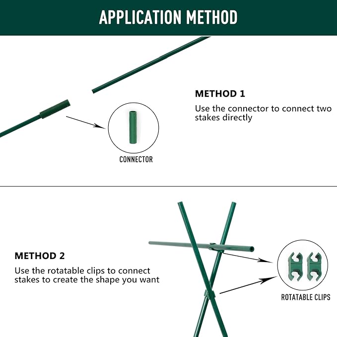 - 【Easy to Assemble】 Connect a desired number of stakes using connectors according to your specific needs. Use the rotatable clips to build an "X" or any other shape you want.