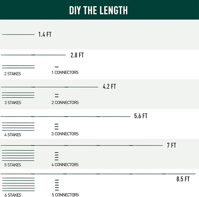 - 【DIY Kit】 This kit contains 30 stakes, each 17" in length and 0.335" in diameter, along with 21 connectors, 21 rotatable clips, 21 plant clips. You can connect two or more stakes to achieve the desired length.