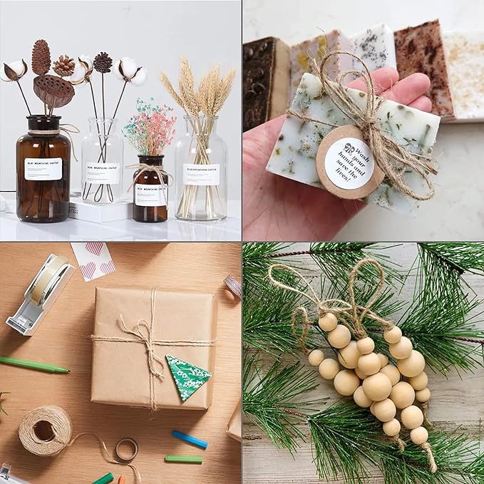 Natural Jute Twine,328 Feet 4mm Hemp Twine Rope for Gift Wrapping Craft Plant Garden Christmas Handmade Arts Decoration Packing String Home Decor
