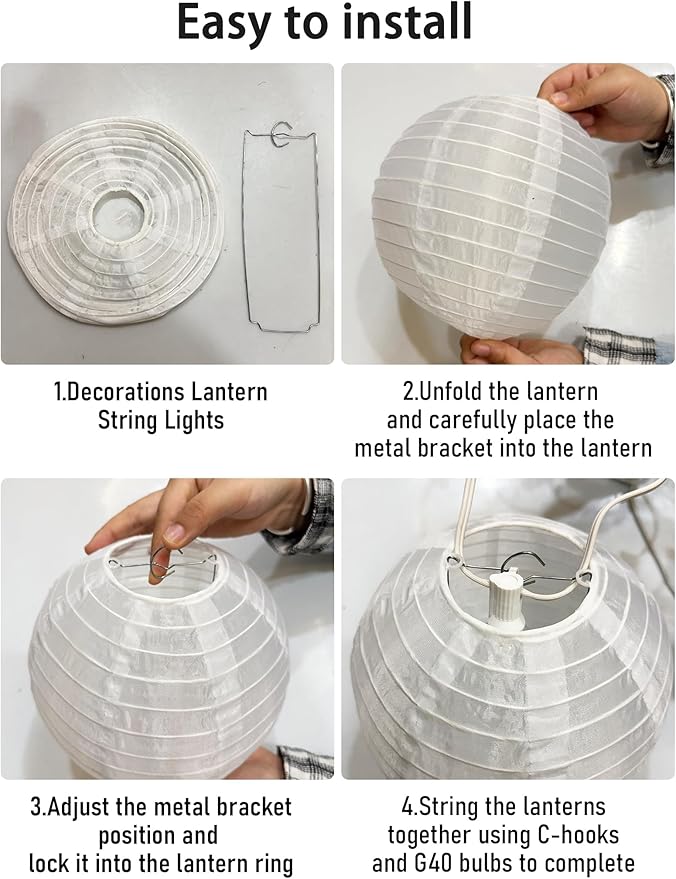 - ðŸ’White Lantern String Lights: The chinese lantern string lights with a total length of 25 feet are plug-in lamp are brighter and more stable than solar/battery powered string lights, male plug spacing is 2 feet, lamp-to-lamp distance is 2.5 feet, tail plug distance is 0.5 feet
