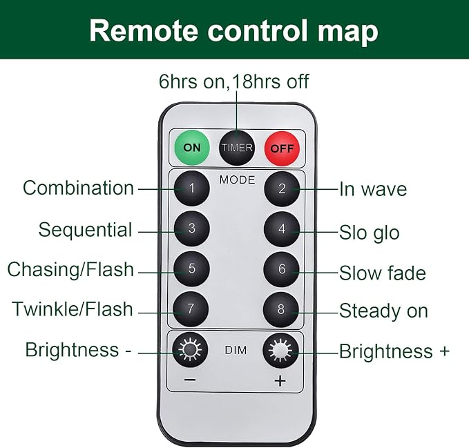 - 8 Modes to Adjust: enjoy the versatility of our Christmas fairy lights' 8 modes, including combination, in waves, sequential, slo glo, chasing, slow fade, twinkle, and steady on; Illuminate the atmosphere romantically by using these wire lights to decorate your parties, weddings, Christmas, Halloween, Thanksgiving, and other events