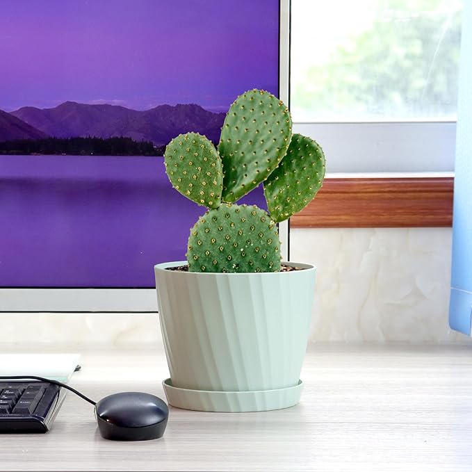 - MODERN MINIMALIST DESIGN - White matte finishing surface plant pot with strip pattern and round shape design bringing out a modern minimalistic styled and elegant. And bottom surface has feet like lines to prevent from sliding. This plastic planter will bring a modern and stylish visual. Great for all house plants.