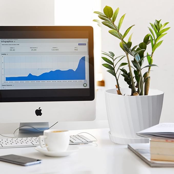 - MODERN MINIMALIST DESIGN - White matte finishing surface plant pot with strip pattern and round shape design bringing out a modern minimalistic styled and elegant. And bottom surface has feet like lines to prevent from sliding. This plastic planter will bring a modern and stylish visual. Great for all house plants.