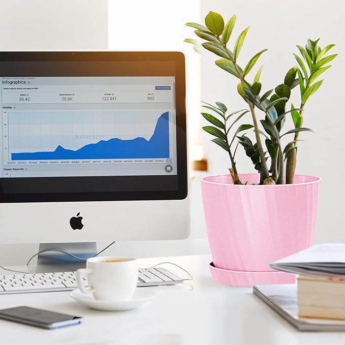 - MODERN MINIMALIST DESIGN - White matte finishing surface plant pot with strip pattern and round shape design bringing out a modern minimalistic styled and elegant. And bottom surface has feet like lines to prevent from sliding. This plastic planter will bring a modern and stylish visual. Great for all house plants.