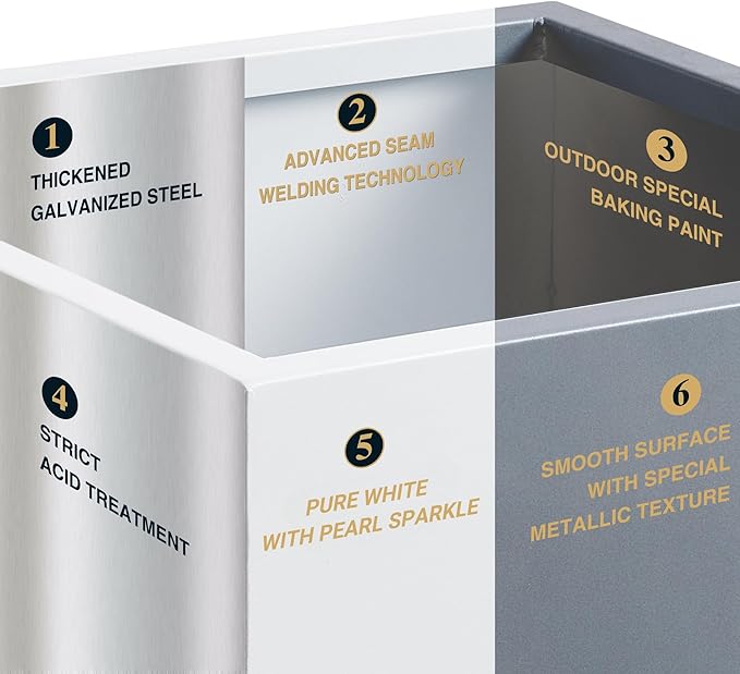 - Metal Construction: This planter box is made from thick galvanized steel for durability and strength.