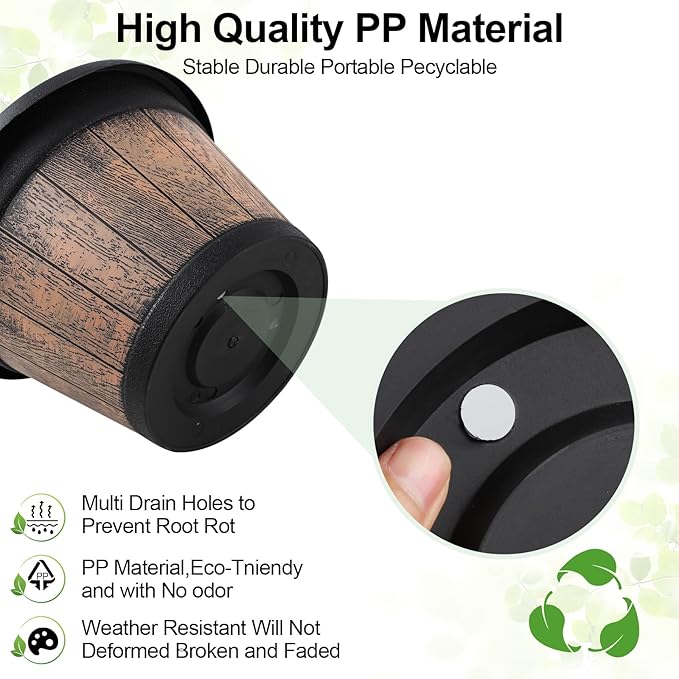 - 【High Quality Materials】Compared to common flimsy plastic pots for plants, our pots are made by sturdy resin. lightweight, no odor, heat-and-cold resistant and hardly be deformed or broken,you can use it indoors and outdoors freely.