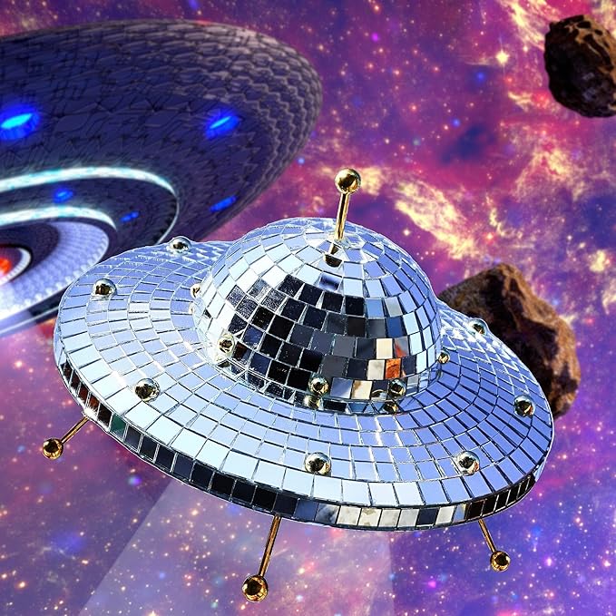 - UFO Disco Spaceship: one UFO craft in one package. Unique appearance design with hand-set mirrored glass tiles makes each UFO disco ball more special. High density foam material, lightweight and durable, not easy to deform.