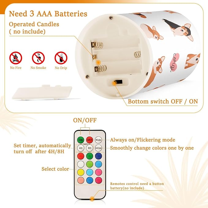 Vdsrup Flameless Candles Set of 2 Funny Welsh Corgi LED Candles with Timer Battery Operated Dog Candle Lights Flickering with Remote for Home Bedroom Decor