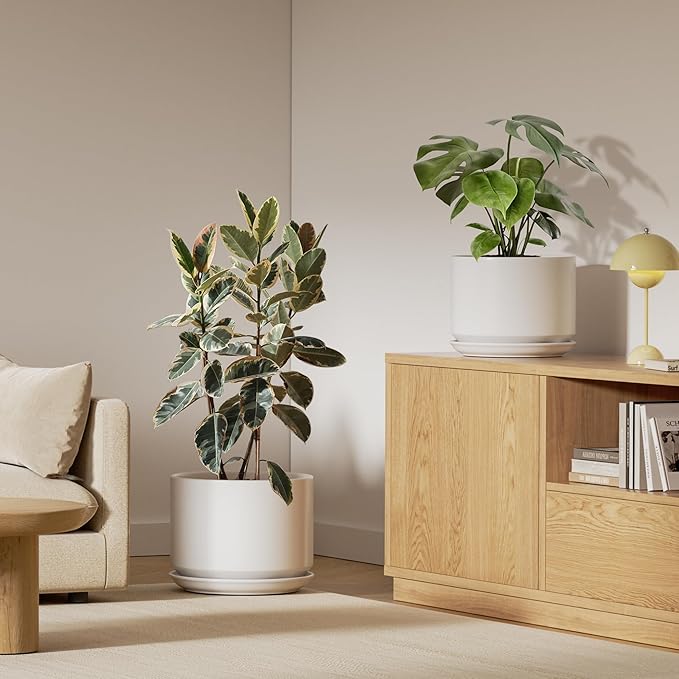 - Real Ceramic: Expertly crafted from top-notch materials, our flower pots for indoor plants surpass faux-ceramic options, like fiber stone, ensuring unmatched durability; Resilient against fading, deformation, or rusting, our white planters withstands prolonged exposure to wind and sunlight; Rest assured, your plants will flourish in style for years to come (Plant not included)
