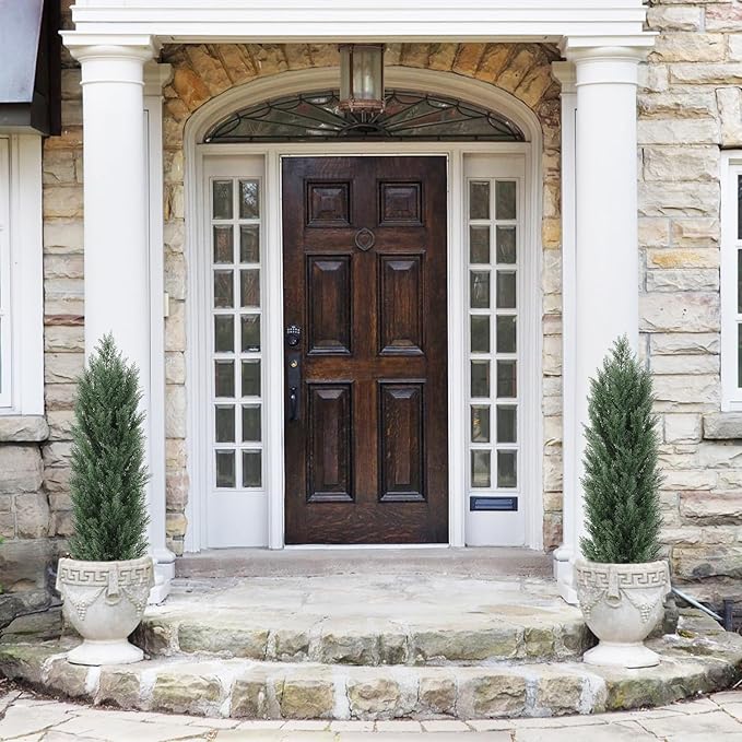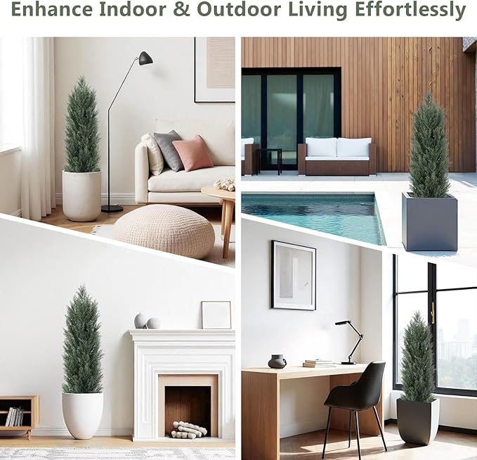 - 【REALISTIC & EVERGREEN LOOK】These cedar topiary trees artificial outdoor feature dense foliage with a natural, sculpted shape that mimics real evergreen bushes. Ideal for outdoor planters, entryways, or patio corners, they offer lifelike greenery that stays vibrant through all seasons. (Note: Branches arrive compressed. Gently shape them by hand for best results.)