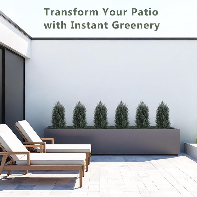- 【REALISTIC & EVERGREEN LOOK】These cedar topiary trees artificial outdoor feature dense foliage with a natural, sculpted shape that mimics real evergreen bushes. Ideal for outdoor planters, entryways, or patio corners, they offer lifelike greenery that stays vibrant through all seasons. (Note: Branches arrive compressed. Gently shape them by hand for best results.)