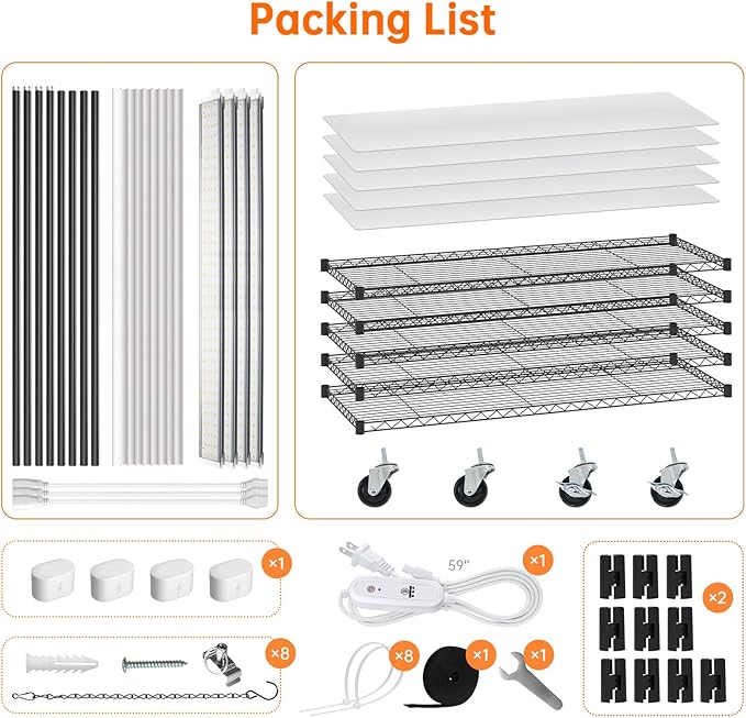 - 【Large Grow Light Shelf Set】47.2" L X 17.8" W X 71" H, 5-tier Grow Light Shelf Set. Each shelf can accommodate 4 of the 10" x 20" seedling trays, meeting your seedling needs. Provides a large display space for you to grow or display a variety of indoor plants