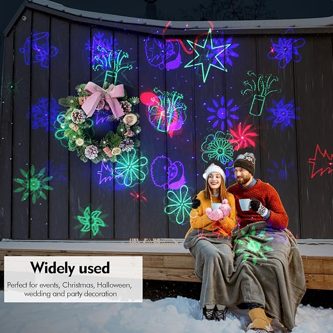 - 【Widely used】This laser projector light has wide coverage projection area for wall, ceiling, garden, trees, and indoor/outdoor. Perfect for events, Christmas, Halloween, wedding and party decoration. A great gift for all seasons and a great gift for Christmas.