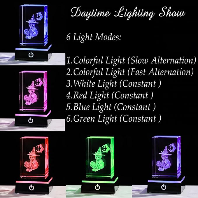 - Led Colorful Light Base: Six lighting modes: slow flashing multi-coloured; fast flashing multi-coloured; constant white light, red light, blue light and green light. Light the crystal in various colors. Lighting up the night, shine bright like a diamond, choose to be happy.