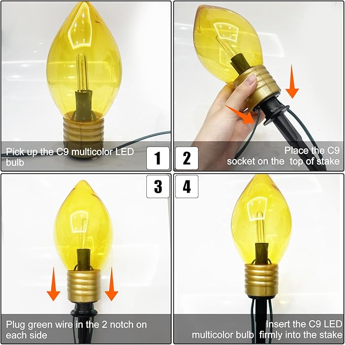 - 🔥Versatile Decor (Plugging and Hanging): Jumbo C9 led multicolor pathway marker stakes lights are not only plug in your garden, yard, pathway, walkway, lawn, sideway christmas decorations and lighting, but also can hanging C9 jumbo multicolor christmas string lights on roofline, window, fence, trees and other outdoor features. create a memorable and magical outdoor holiday display with Jumbo Multicolor C9 Christmas Pathway Lights
