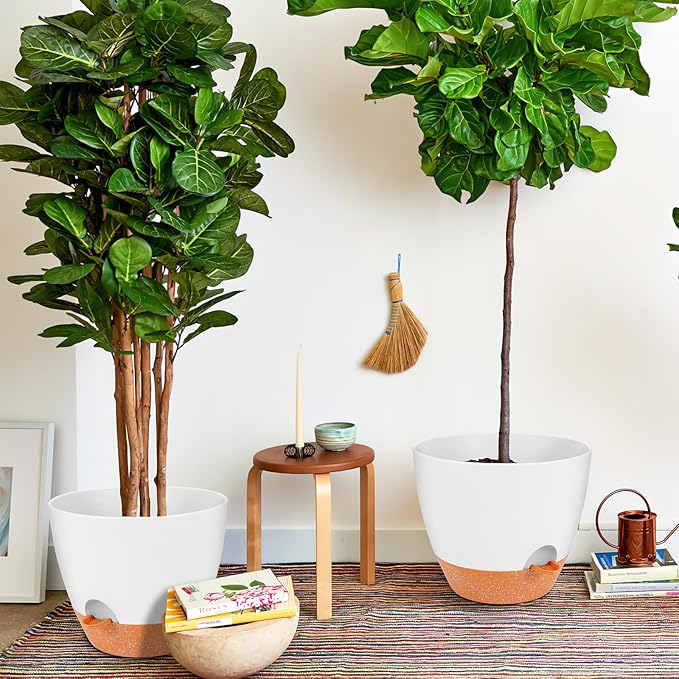 GARDIFE 12 inch planters, Plant Pots,Self Watering Pots, 2 Pack Large Plastic Flower pots with Deep Reservior and High Drainage Holes for Indoor Outdoor Plants and Flowers, White