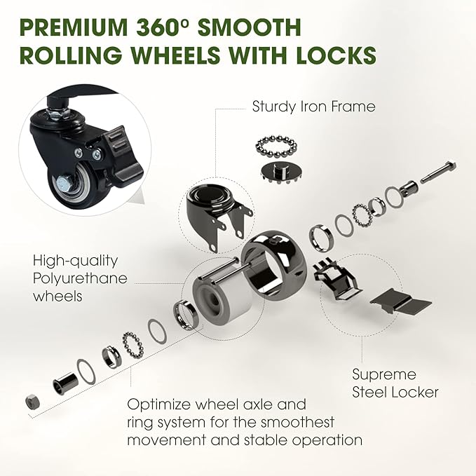 - 362° SMOOTH ROLLING WHEELS: Polyurethane caddy wheels rotate smoothly on various surfaces; Lockable to prevent movement, great for plants
