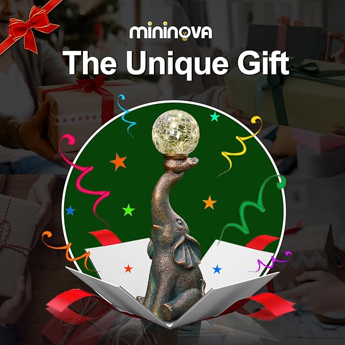 MININOVA Garden Decor Outdoor Statues Elephant with Cracked Glass Ball, Cute Solar Figurine for Patio, Lawn, Yard Art Ornament Decorations (8 LED Lights)