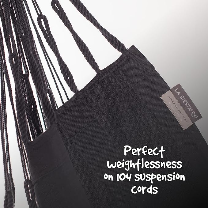 LA SIESTA® - Large Comfort Habana Cotton Hammock Chair & TreeMount - Hanging Hammock Chair w/Suspension Kit for Trees Beams & Posts - Indoor Outdoor Swing Hanging Chair Bedroom Patio Balcony - Onyx