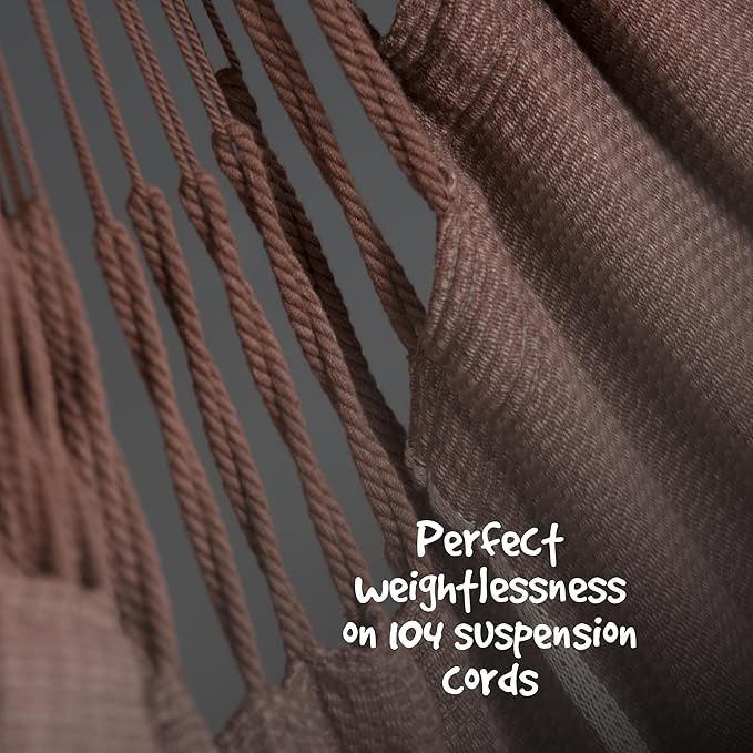 - OPTIMAL COMFORT & DURABILITY: Immerse yourself in a dreamlike floating experience with 104 suspension cords ensuring optimal weight distribution. Our indoor and outdoor hammock swing chair and a hanging chair for indoors promises not just comfort but durability, making it a reliable companion for moments of relaxation, reading, or simply unwinding.