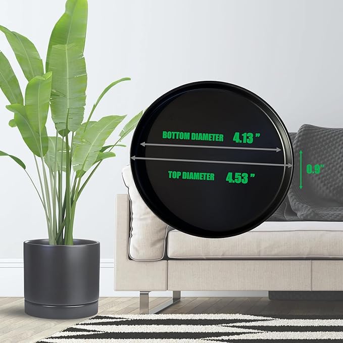 - Multi-size plant dish : Plant Flower pot saucers, offers a variety of small, large, extra large size plate plant saucer and flowerpot tray color, 4/4.7/5/5.6/6/6.4/6.6/7/8.5/9/10/11/12/12.20 inch plant saucers, from small to large outdoor indoor plants garden. Please compare the size of the plant bottom of the pot with the size of our plant saucer before purchasing to ensure that you can match the right pot, and the large size plant saucer pot tray is compatible with the small size pot