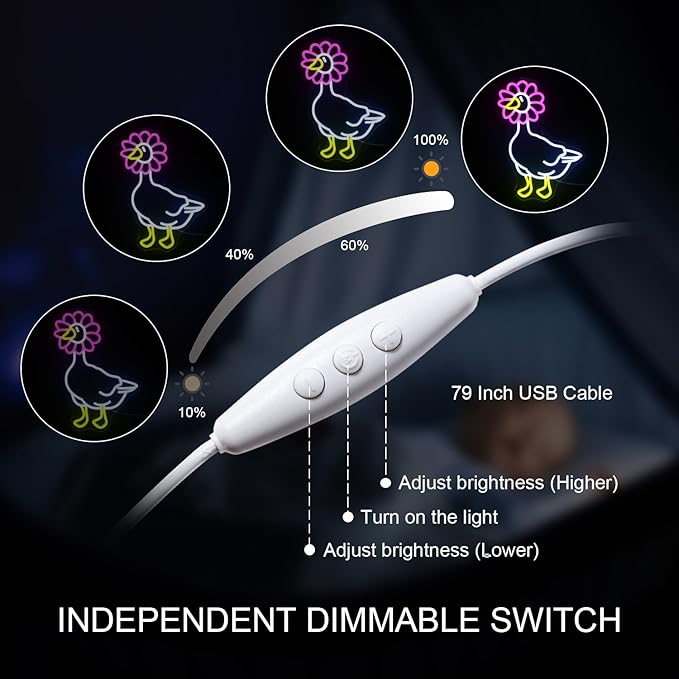 - Versatile Placement: Whether you're styling a nursery, adding a whimsical touch to a playroom, or enhancing the ambiance of your living space, our "Duck in Pink Wreath" light up neon sign is a versatile accent piece that adds charm and character to any environment.
