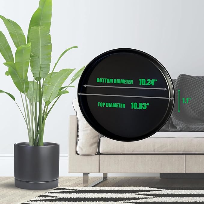 Ceramic Plant Saucer Pot Tray 10 Inch, Planter Saucers 4 5 6 7 8 9 10 11 12 13 Inch for Indoors Outdoor, Durable Sturdy Flower Drainage drip Water Tray for Glazed Pots Base (10.7 Inch-Black)