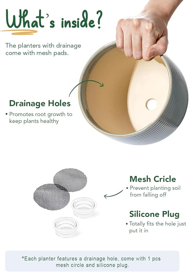 - Thoughtful Accessories: Our flower pots for indoor plants include silicon plug and drainage hole net, giving you full control; let roots enjoy moisture while avoiding excess water; seal with a silicon plug to prevent leaks or use a mesh pad to retain soil and provide optimal ventilation (Plant not included)