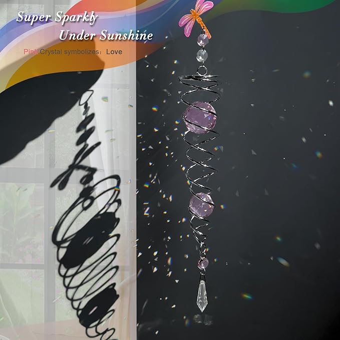 - 【PREMIUM CRYSTAL SUNCATCHER】The spiral with crystal is a special sun catcher rainbow maker, it’s Super Sparkly under sunshine. You can also add a motor(not include) to let the spiral to spin ,while spiral tail rotating (it can’t spin by itself.), the crystal ball seems to move up and down like floating and dancing in air, presents the magical visual illusion.